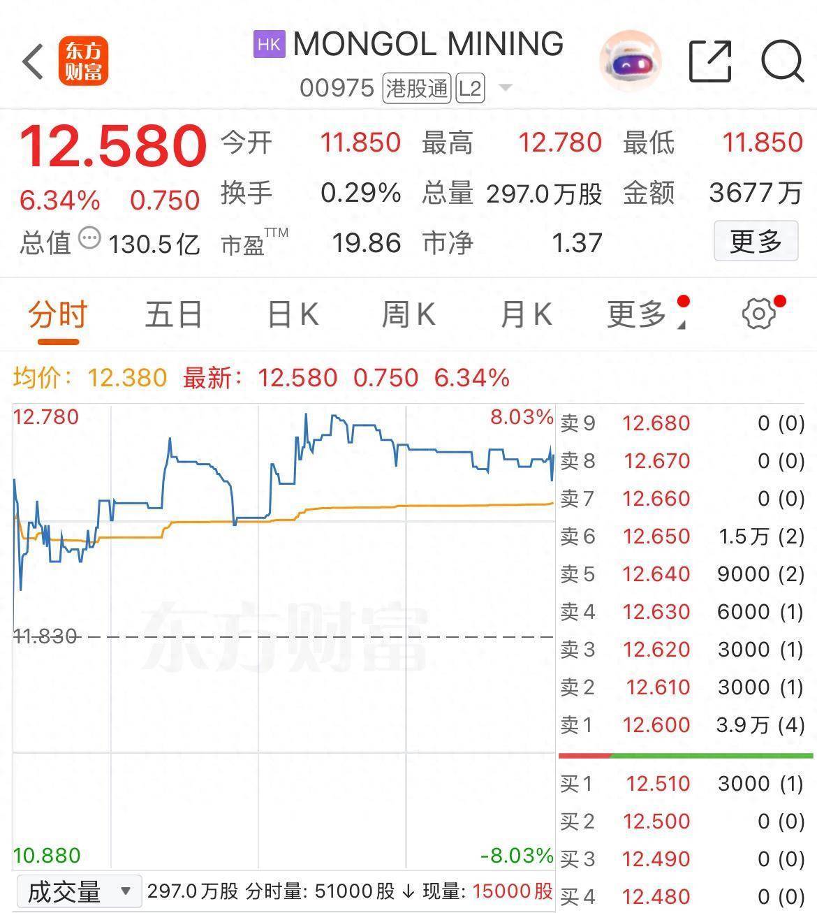 2月20日为港股马年首个交易日,当日港股跳水。截至收盘,MONGOL MINING股价涨6.34%,报12.58港元/股。